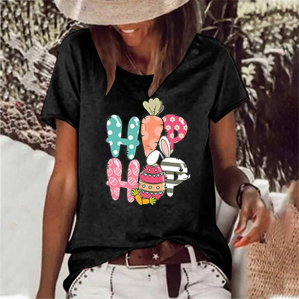 Whlbf Womens Easter Shirts Casual Summer Easter Printing Short Sleeves Round Neck Loose T Shirt Blouse Tops Black 12 Xxl Walmart Com