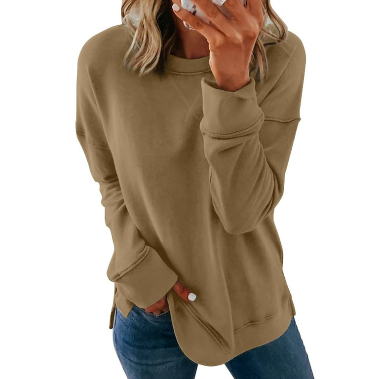 Dokotoo Womens Casual Crewneck Solid Color Sweatshirt Loose Soft Long Sleeve Pullover Tops Shirts Size Large Us 12 14 Walmart Com